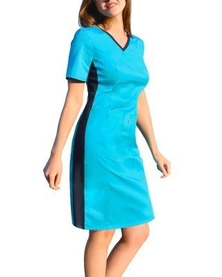 Sukienka medyczna z elastycznym ściągaczem w boku Colormed, kolor turkusowy, SKE1-T