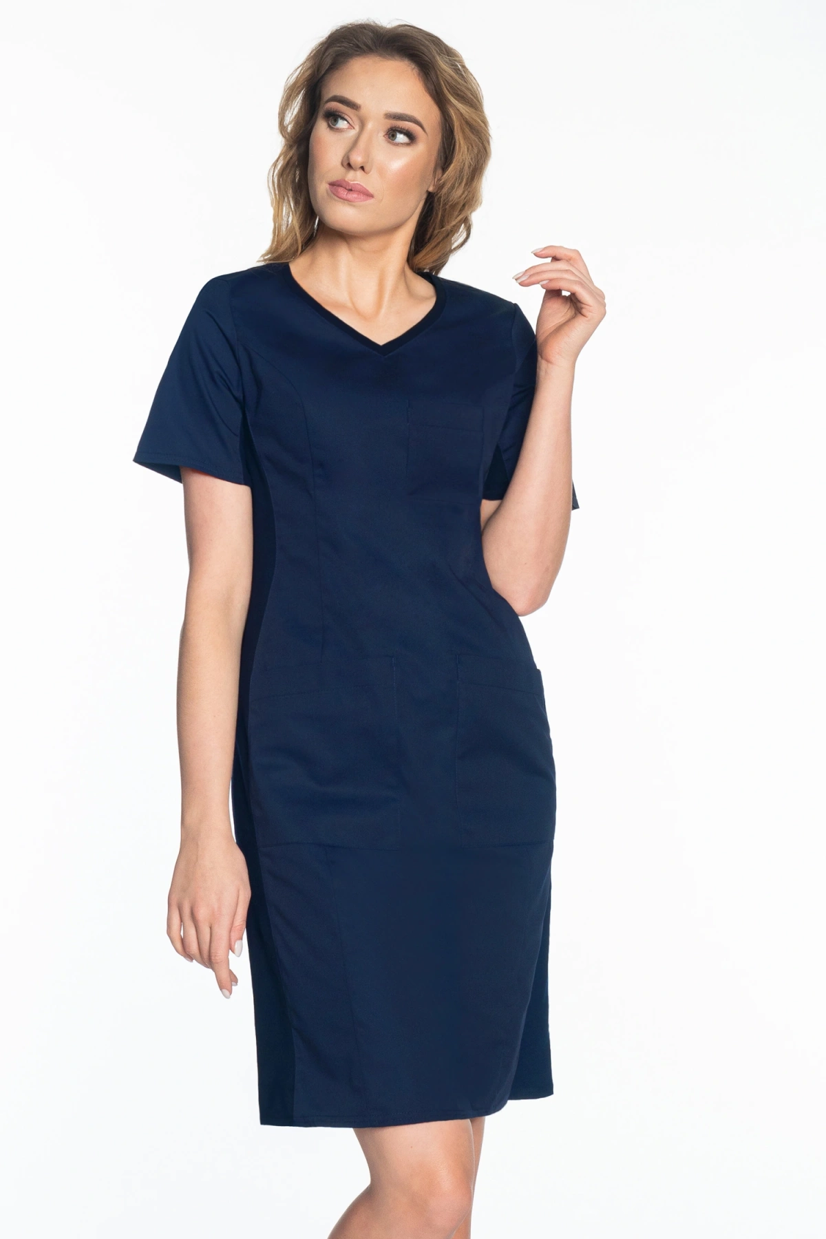 Scrubs dress with ELASTIC SIDE PANELS, navy blue, SKE1-G