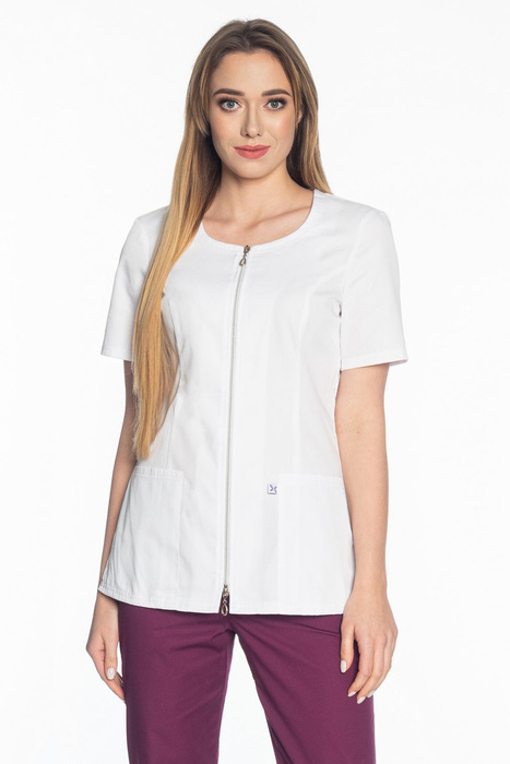 - Żakiet wcięty w talii, podkreślający sylwetkę, zapinany na ozdobny zamek z możliwością odpinania od góry oraz od dołu.