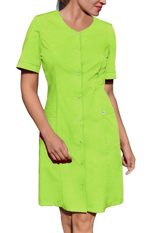 - Klasyczny fartuszek / sukienka medyczna zapinana na najwyższej jakości bezniklowe napy.