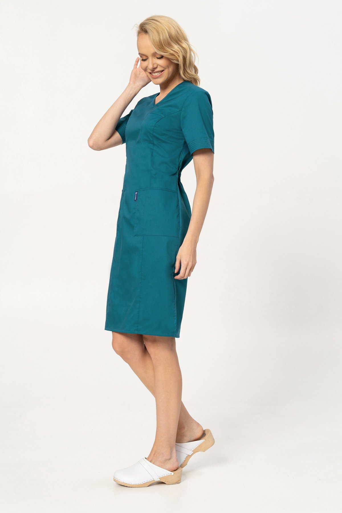 Szukasz medycznej sukienki, która łączy funkcjonalność z kobiecą sylwetką? Model SKE6 został zaprojektowany z myślą o maksymalnym komforcie w dynamicznych warunkach pracy. Dzięki elastycznej tkaninie z dodatkiem stretchu oraz sprytnej regulacji w talii dopasujesz ją do swojej figury bez kompromisów – nawet po wielu godzinach dyżuru.