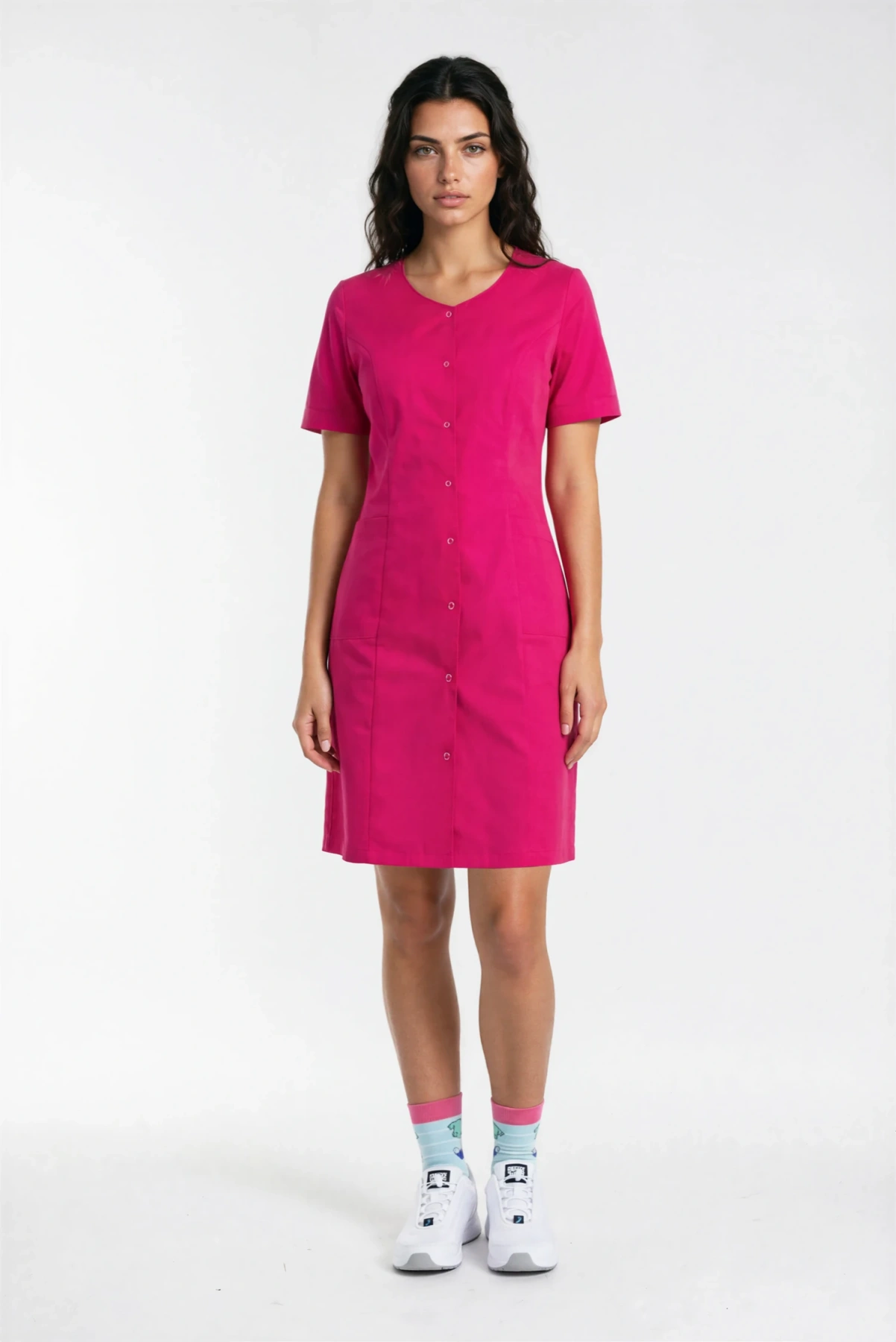 Fartuch Medyczny / kosmetyczny / sukienka zapinana na napy Colormed, kolor fuksjowy, FC6-F', bawełna +